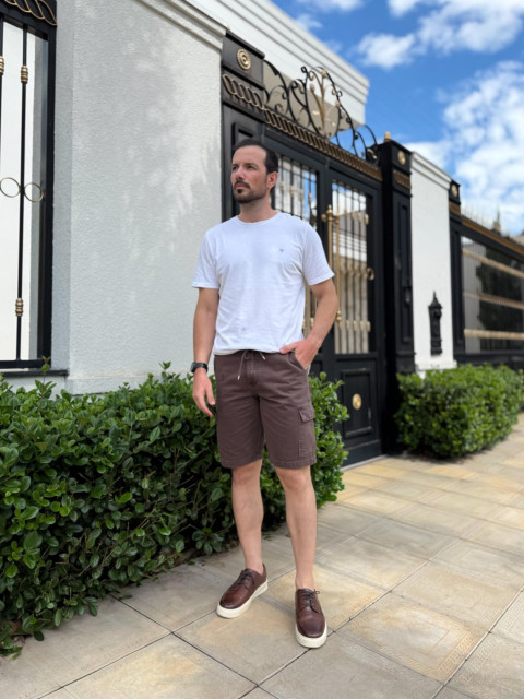 Bermuda Masc Cargo Sarja Super Natural Marrom