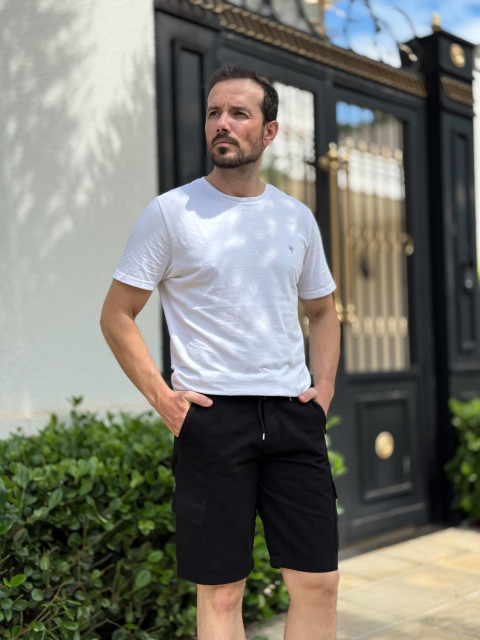 Bermuda Masc Cargo Sarja Super Natural Preto