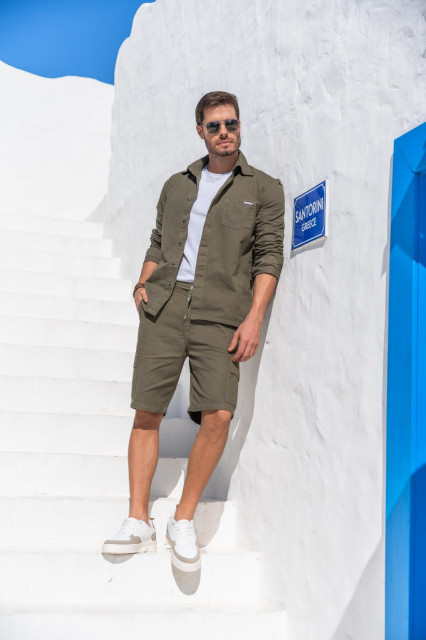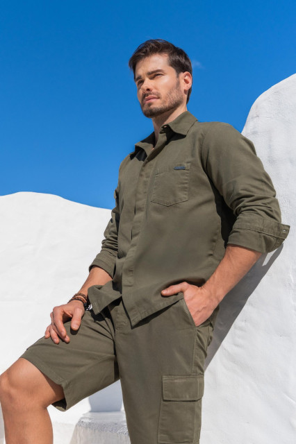 Bermuda Masc Cargo Sarja Super Natural Verde Militar