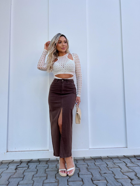 Saia Maxi Skirt Super Confort Marrom Saia Maxi Skirt Super Confort Marrom
