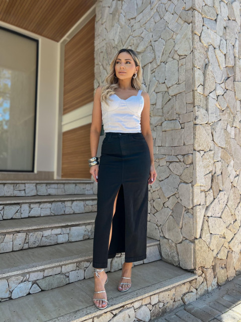 Saia Maxi Skirt Super Confort Preta Saia Maxi Skirt Super Confort Preta