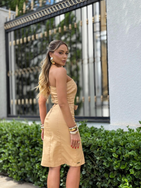Vestido Curto Resinado Super Confort Caqui Vestido Curto Resinado Super Confort Caqui