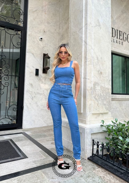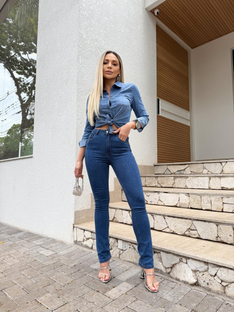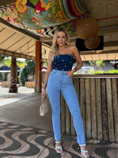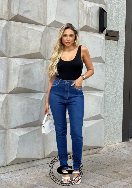 Calça Reta 2 em 1 Super Conf Média C/Pedrarias