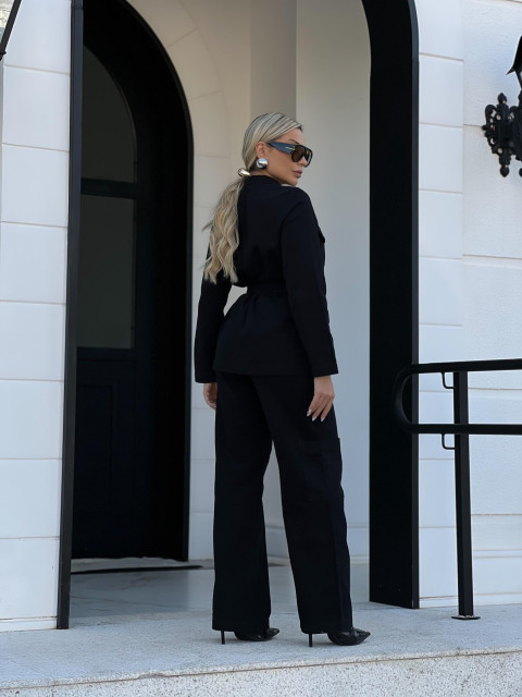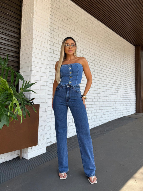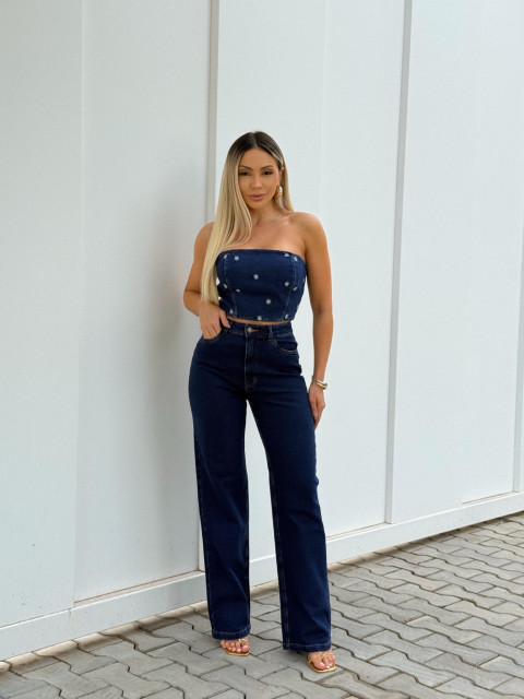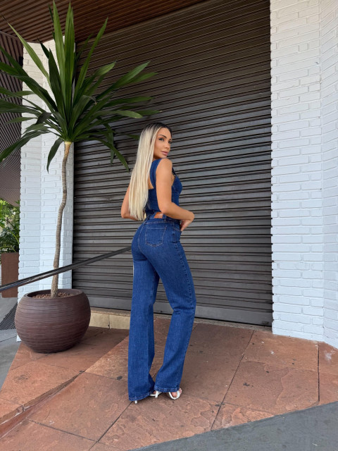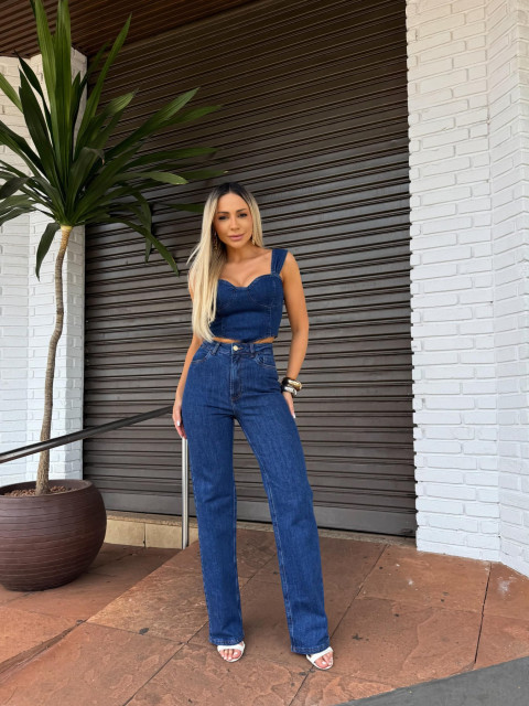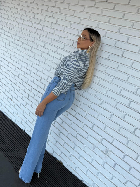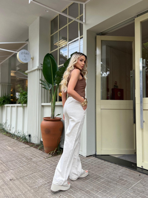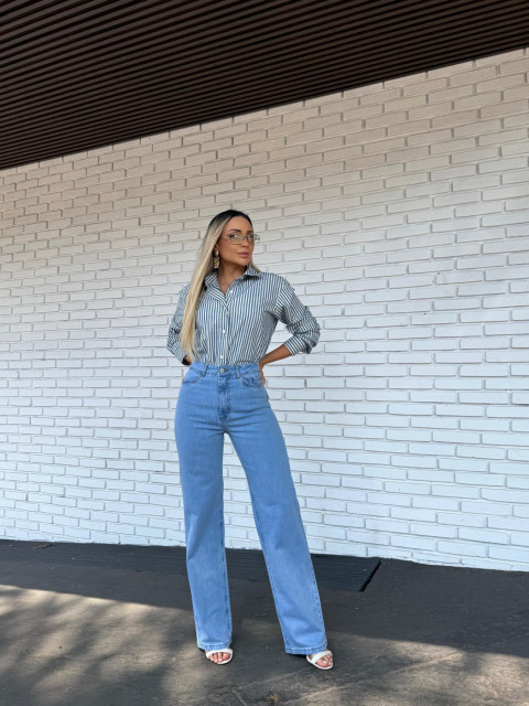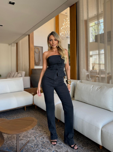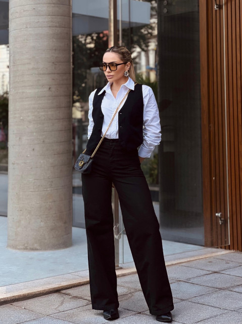 Wide Leg Slim C/ Fenda Super Confort Preta acinzentada