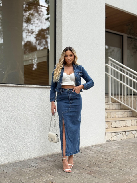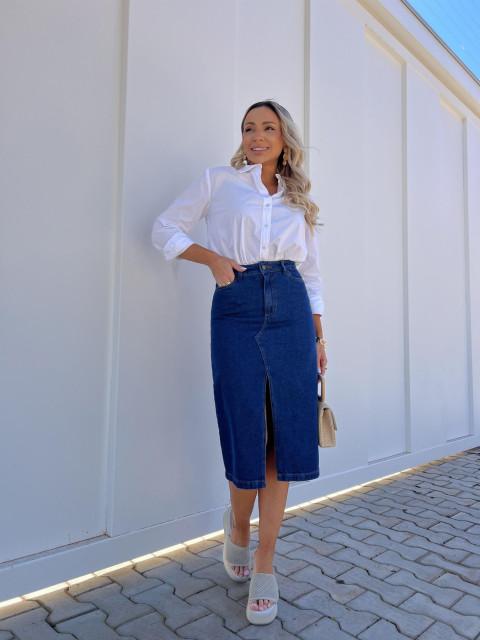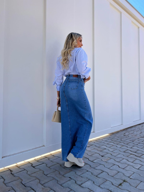Maxi Skirt Evasę Desfiada Super Natural Média