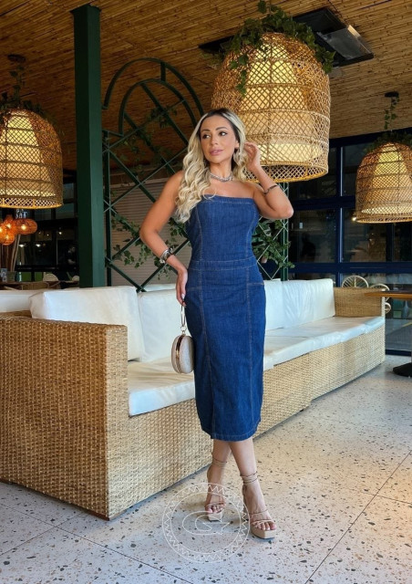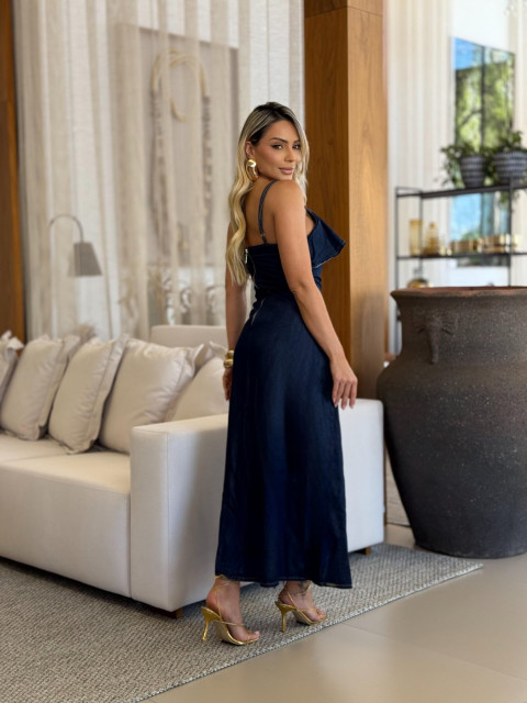 Vestido Midi Tomara que Caia Super Conf Escuro