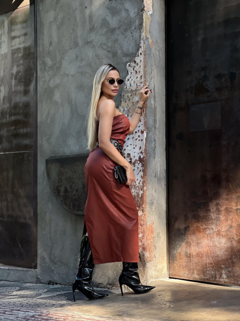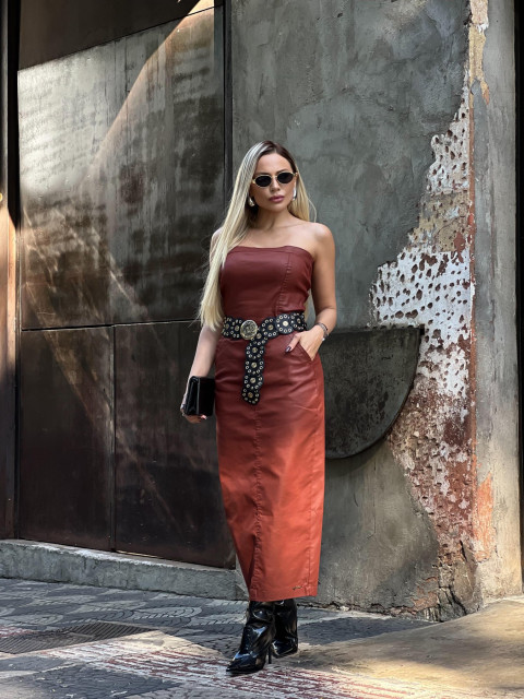 Vestido Midi Alongado Resinado Super Conf Telha