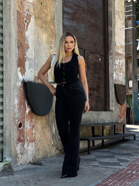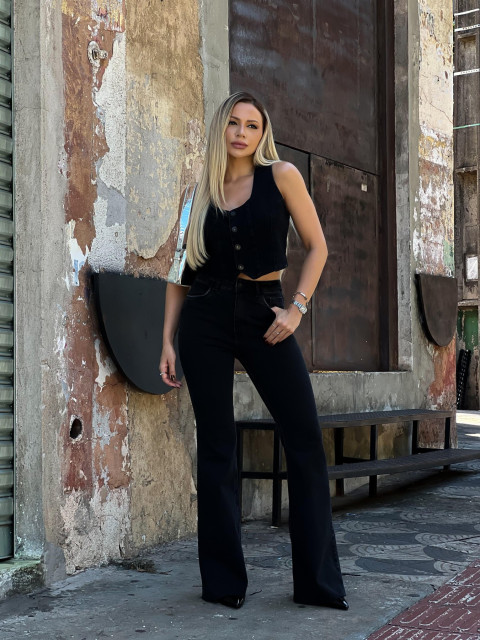 Calça Flare Barra à Fio Super Confort Preta
